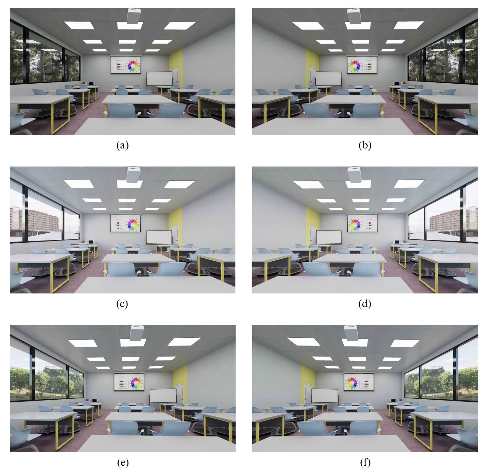 Properly designed windows contribute to improved indoor air quality, reduced energy usage, and enhanced visual and thermal comfort - all of which are closely linked to better student outcomes [6,7]. The visual connection to outdoor environments, especially natural scenes, has increasingly been recognized as an important factor in promoting student well-being. Exposure to natural landscapes - particularly greenery - has been associated with reduced stress, attentional recovery, better behavior, and enhanced academic performance [3,8-11]. Additionally, high-quality window views have been shown to elevate user satisfaction, mitigate visual discomfort, and increase tolerance to glare in both learning and working settings [12].