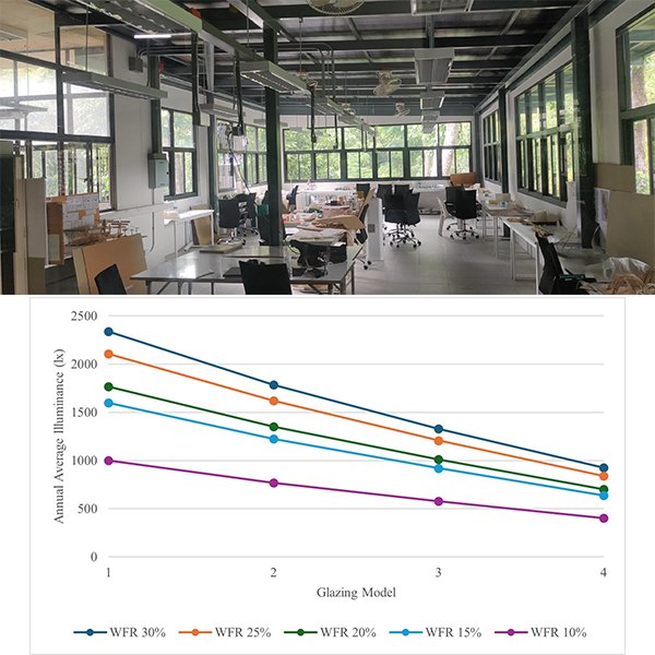 Passive lighting design plays an important role in providing natural lighting to save electricity consumption in buildings. This study aims to investigate the performance of natural lighting and the potential of alternative designs through sidelights with 3 shading device models and light shelves with different sizes in north, west, east, and south orientations.