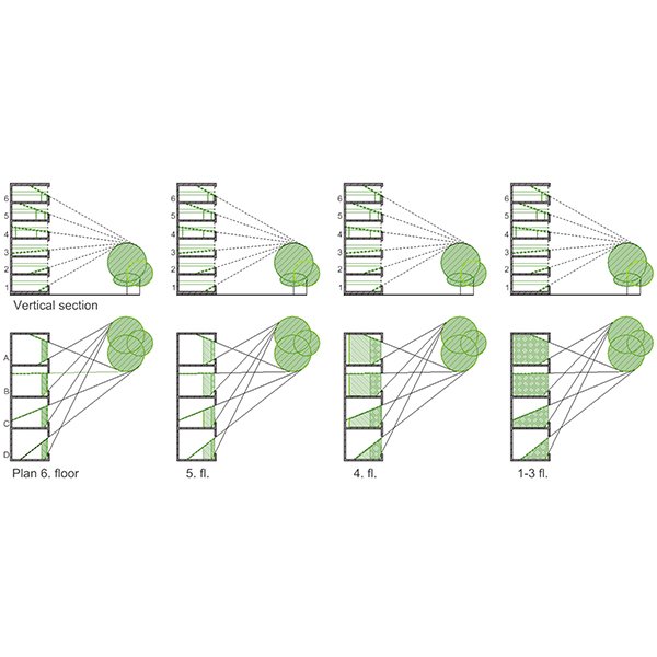 The paper proposes a new tool for evaluation of the degree of visual contact with the outdoor greenery, the Greenery-View factor (GV), intended to be easy to grasp and simple to use.