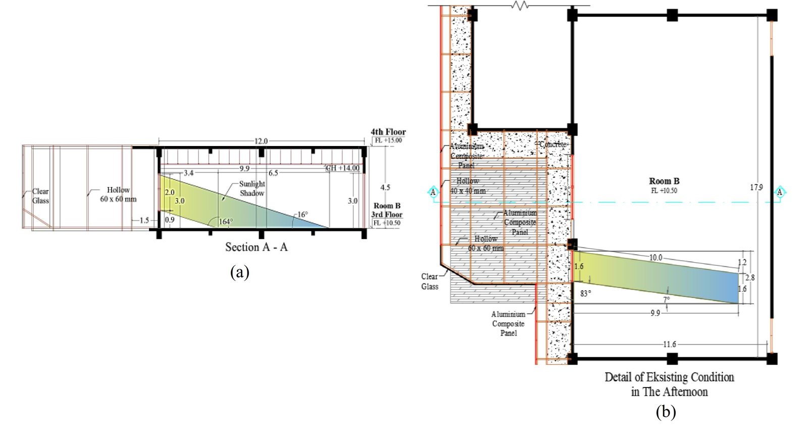 Fig. 18. (a) Detail floor plan of the West orientation room and (b) Detail of Existing condition - West orientation.