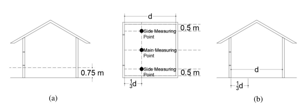 Fig. 4. (a) Position of Measuring Point (left & middle); (b) Explanation of Distance d (right).