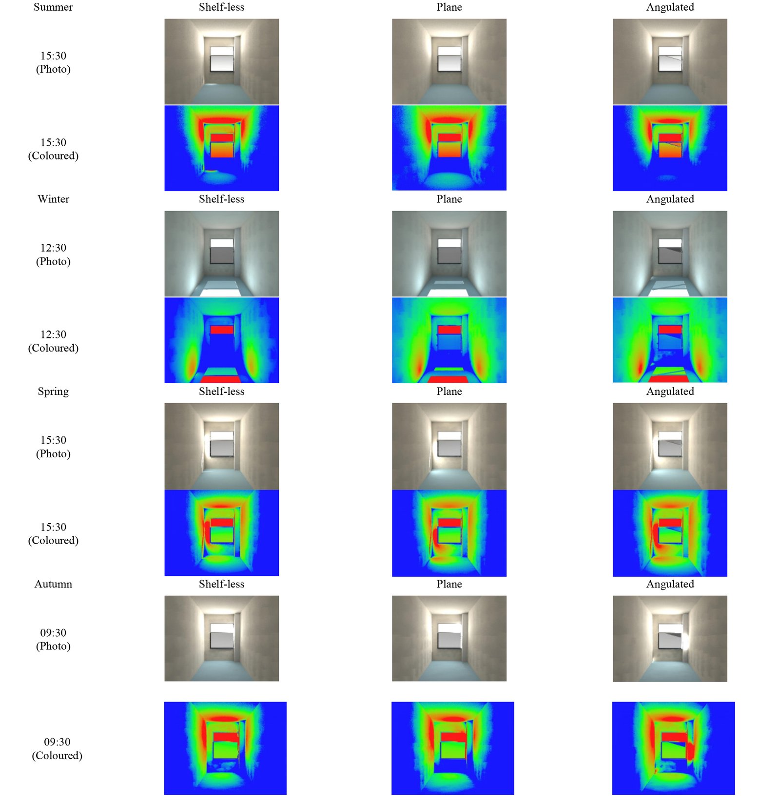 Table 2. Scale model photos for different time and different configuration for Altmann light shelf.
