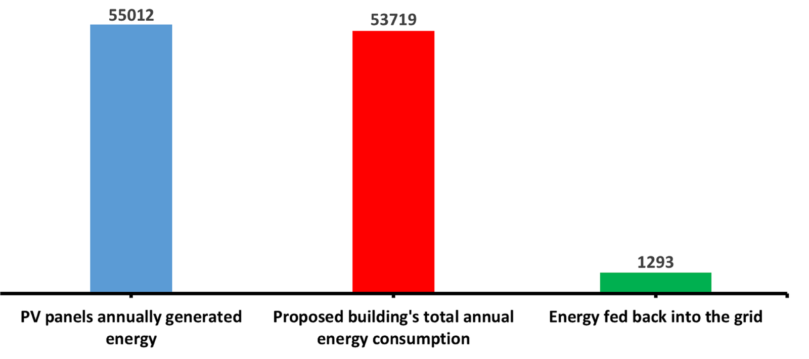 Fig. 11. Annual energy balance of the proposed ZEB, showing surplus PV generation over building consumption, with excess energy fed to the grid.