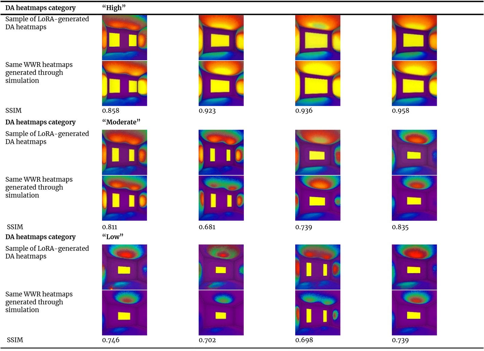 Table 6. SSIM measurement test applied to samples of heatmaps generated using trained LoRA and their corresponding heatmaps generated through simulation.