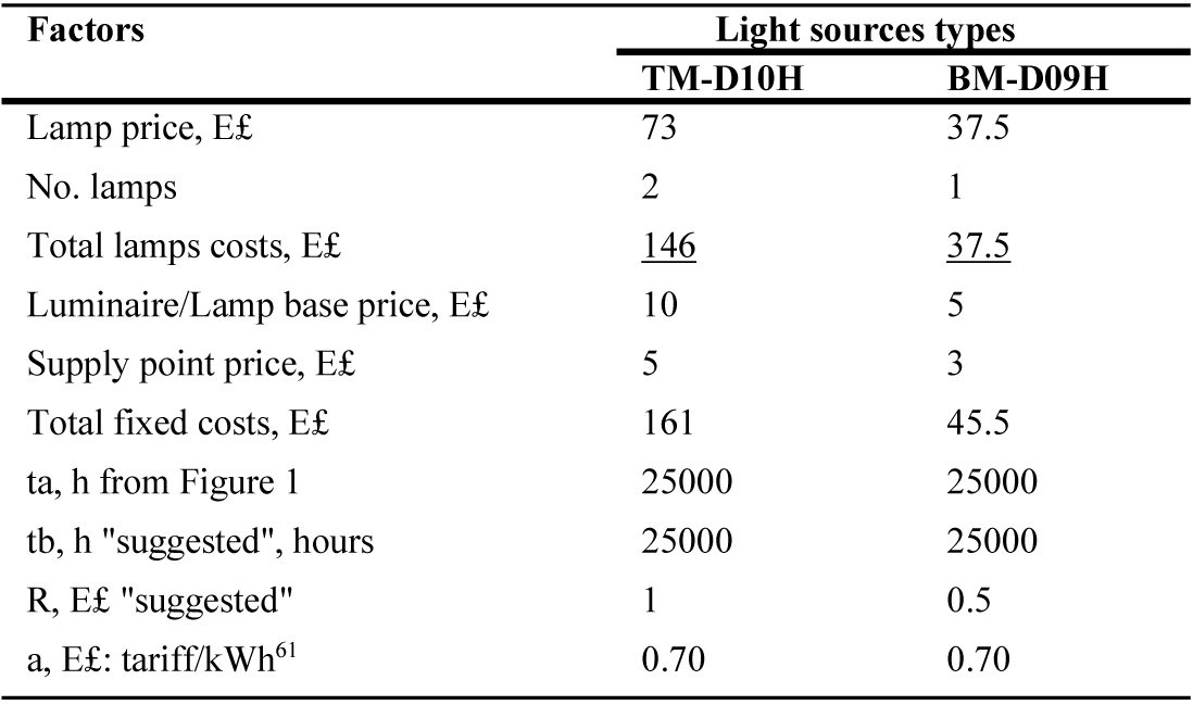 | C1 | Cost of light source fixture lamp/s, E£ or $ |