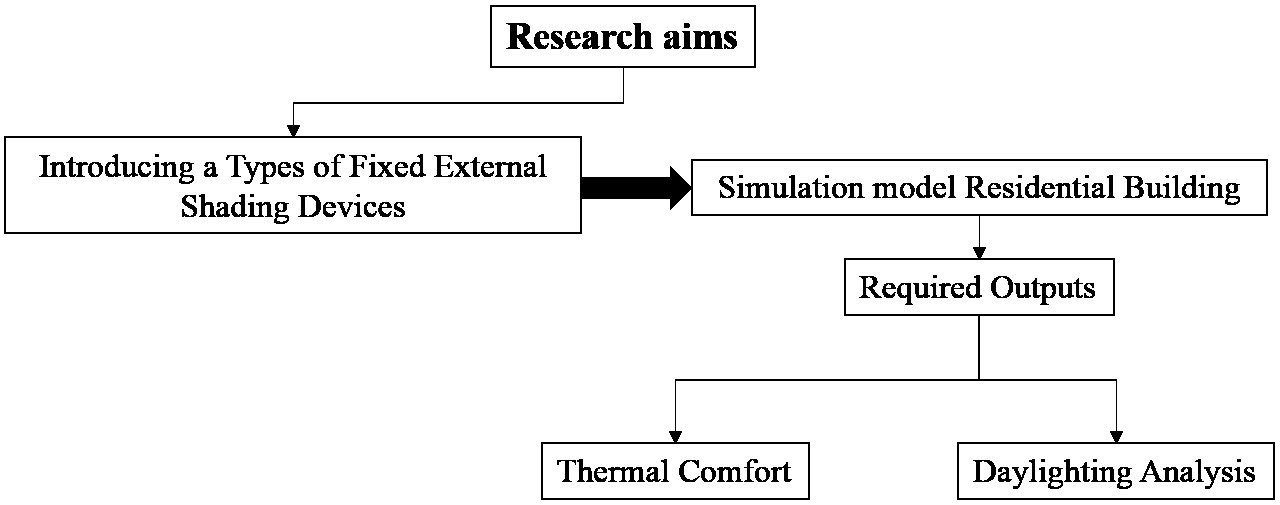 A remarkable number of researches, fixed external shading devices have been studied as tools to reduce energy consumption in buildings. Table 1 has been categorized researches on fixed shading devices based on the type of shadings, energy analysis tools, considerations, and climate considered in the paper.