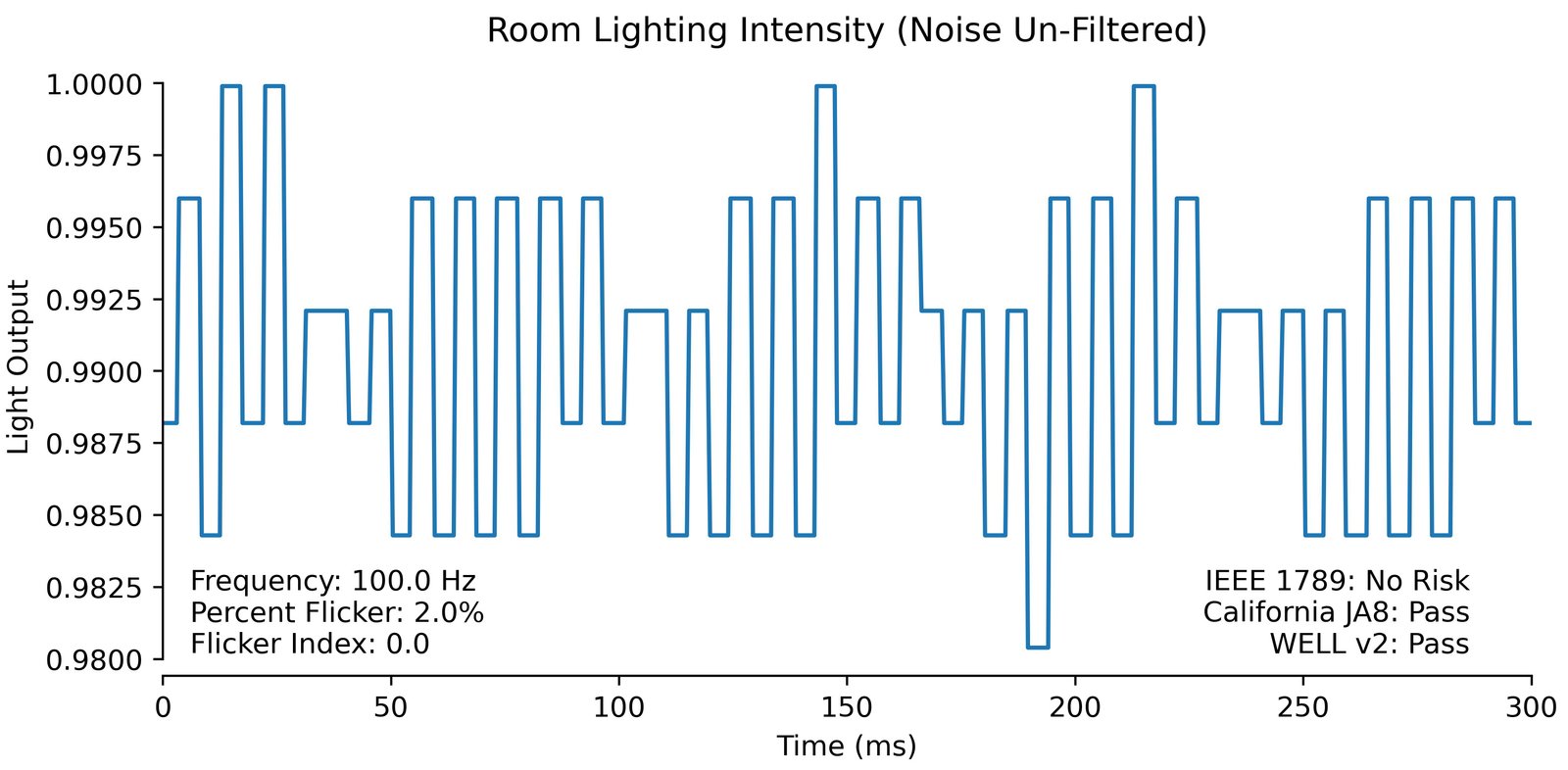 Electrical transformers were once used to step up or down voltages to control interior lighting. The AC mains input voltages exhibit flicker characteristics due to its low frequencies – power-line flicker. Today, direct current (DC) source drives LED lighting with the advances from power electronics technology. A DC source-driver at the lighting output reduces flickering to appropriate levels, improving occupant visual comfort. The Pulse Width Modulation (PWM) technique is used to control lighting intensity levels [5]. Though lighting equipment moves toward modern LED lighting standards, source flicker can still exist at lighting ends, such as through PWMs.